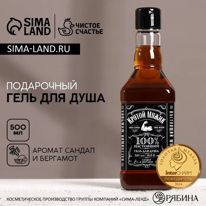 Гель для душа виски «Крутой мужик», 500 мл, аромат сандала и бергамота, Чистое счастье