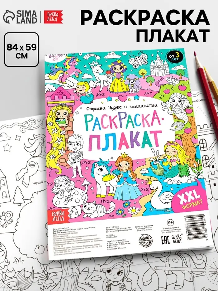 Раскраска гигант «Страна чудес и волшебства» — это отличная возможность для юных леди весело провести время, развивая моторику и фантазию.