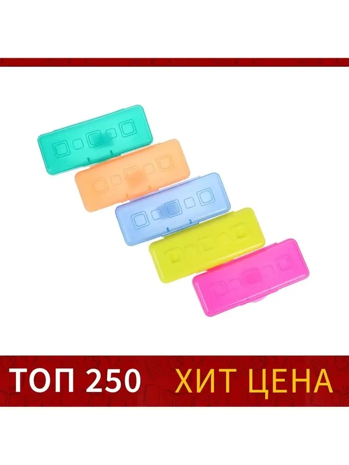 Пенал - футляр Calligrata «Школьный», 80×205×38 мм, полупрозрачный. пластиковый, МИКС