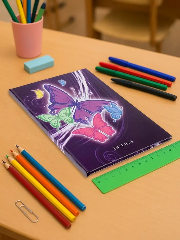 Дневник школьный для 1-11 классов, «Бабочки. Неон ?», твёрдая обложка 7БЦ, глянцевая ламинация, 40 листов