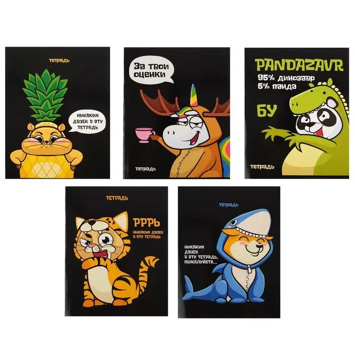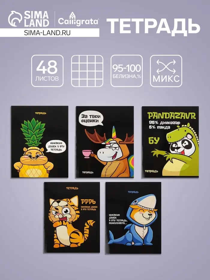 Комплект тетрадей из 5 штук, 48 листов в клетку Calligrata Meow, обложка мелованный картон, блок офсет