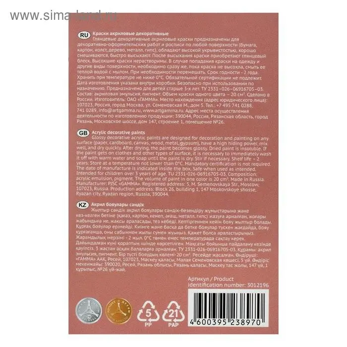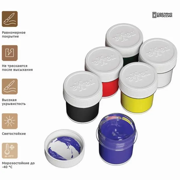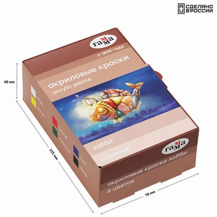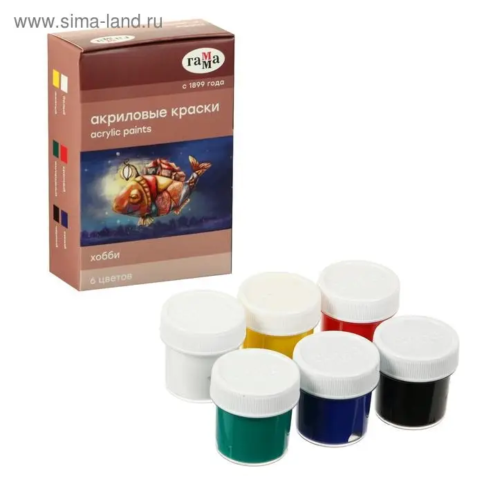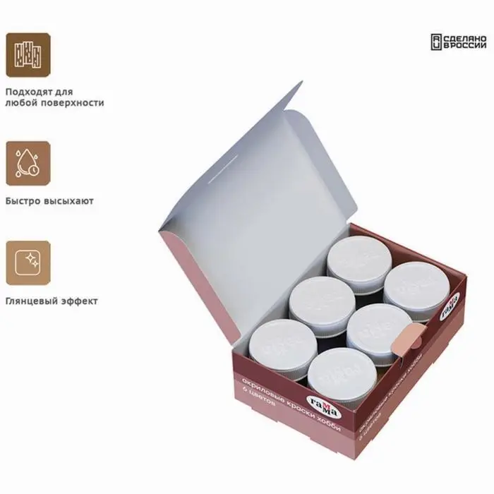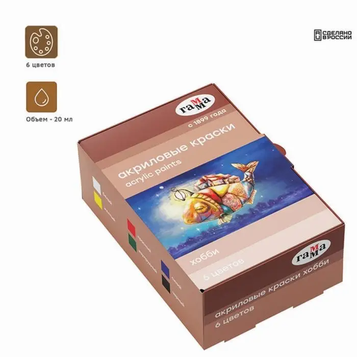 Краска акриловая, набор 6 цветов × 20 мл, Гамма «Хобби», морозостойкая, глянцевая