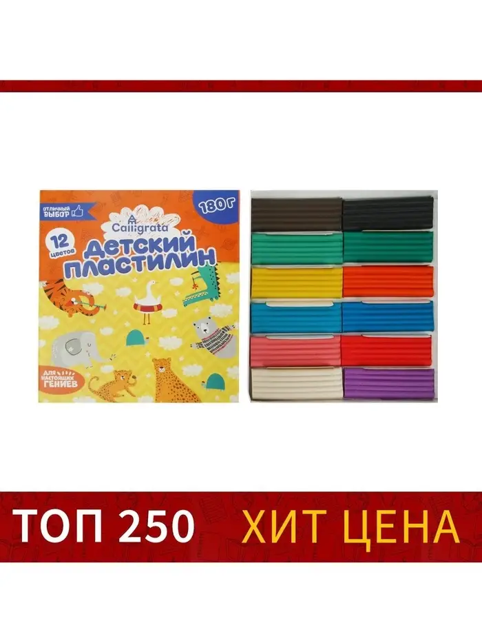 Пластилин Calligrata «Классический», 12 цветов, 180 г