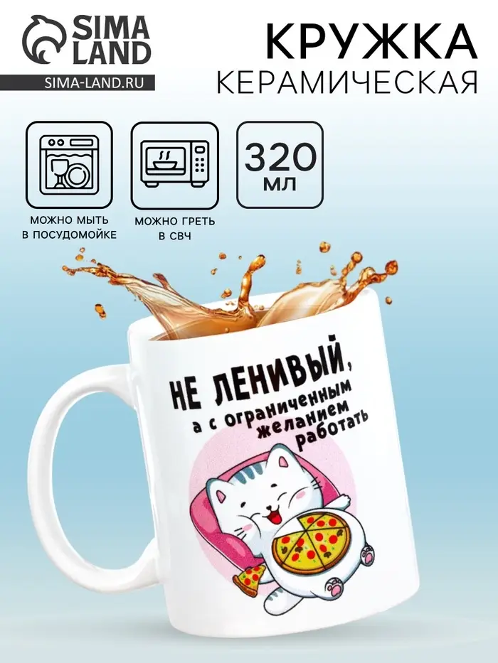 Кружка чайная керамическая «Не ленивый», 320 мл