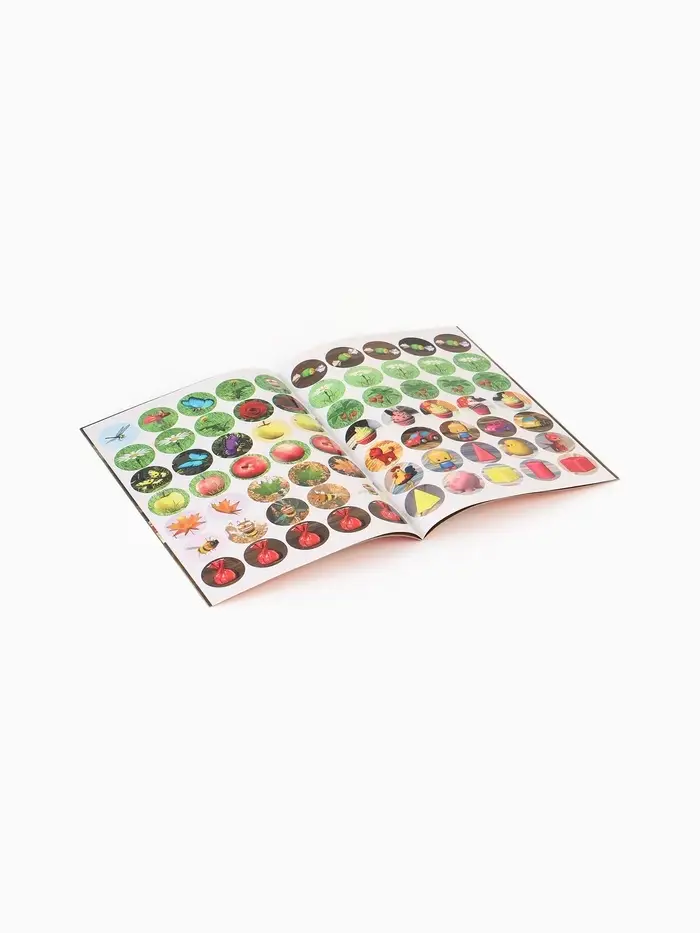 - 70 ярких наклеек-кружочков, которые нужно правильно разместить на страницах.