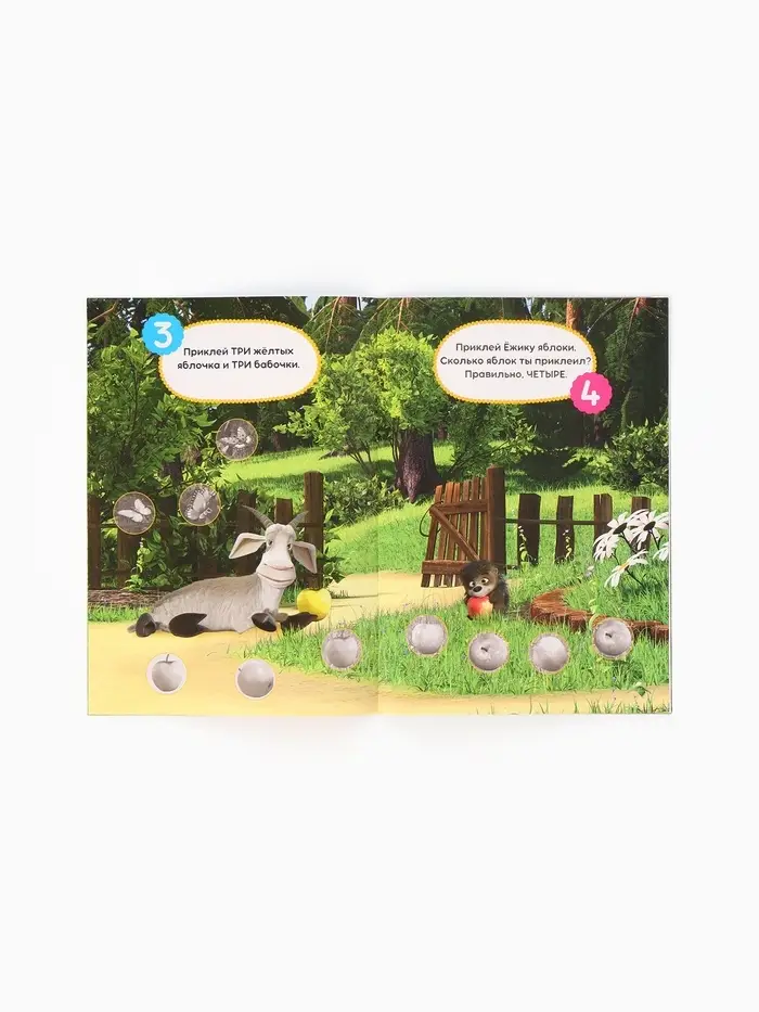 Ребёнок выполняет задания, подбирая наклейки-кружочки к соответствующим местам на страницах. Это помогает ему научиться считать, запоминать числа и развивать внимание к деталям. Знакомые персонажи добавляют радости и поддерживают интерес к обучению. Это похоже на «первые шаги в мир математики», где каждая наклейка становится этапом на пути к новому знанию. Благодаря продуманной структуре процесс обучения становится естественным и приятным.