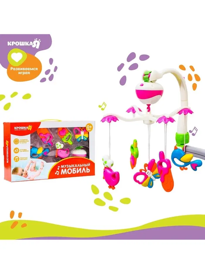 Мобиль музыкальный на кроватку Крошка Я «Полянка», на батарейках