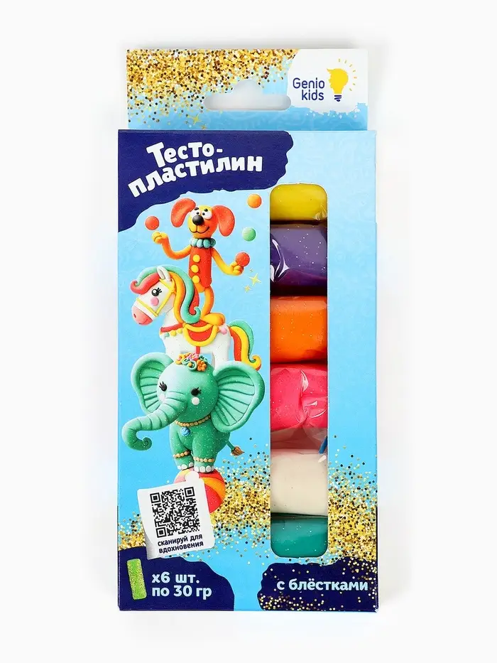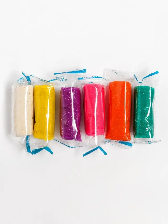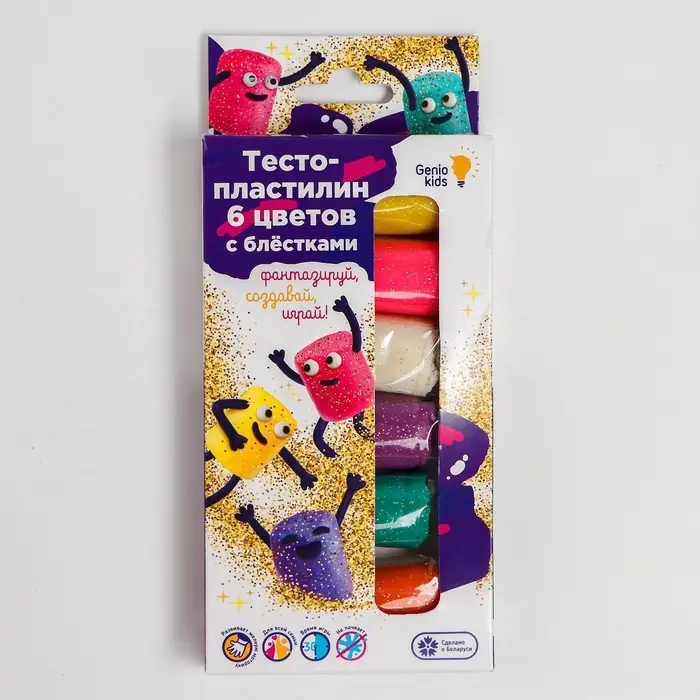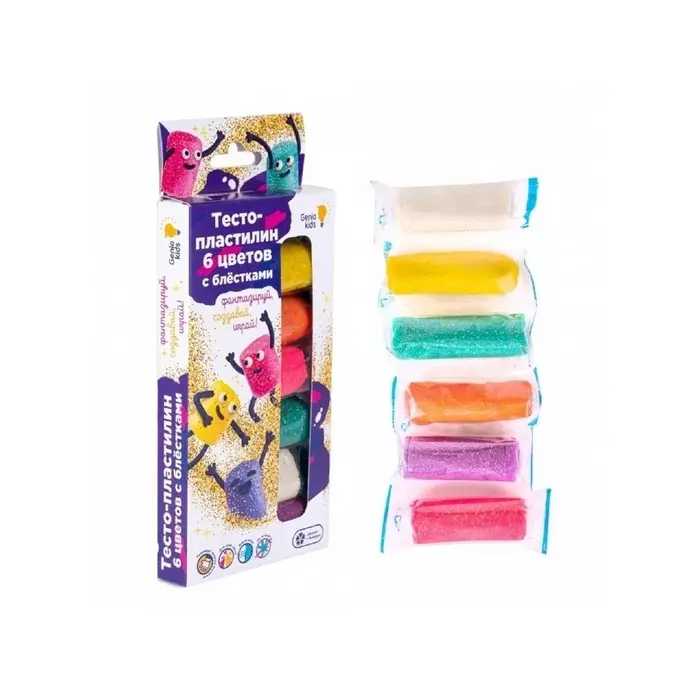 Тесто-пластилин, набор 6 цветов, с блёстками