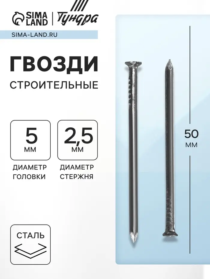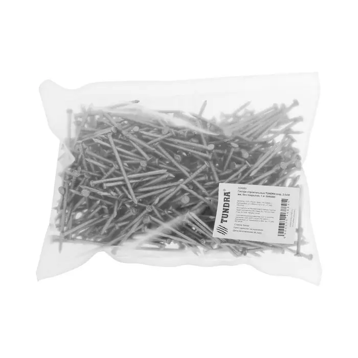 Гвозди ТУНДРА, строительные, ГОСТ 4028-63, без покрытия, 2.5×50 мм, фасовка 1 кг