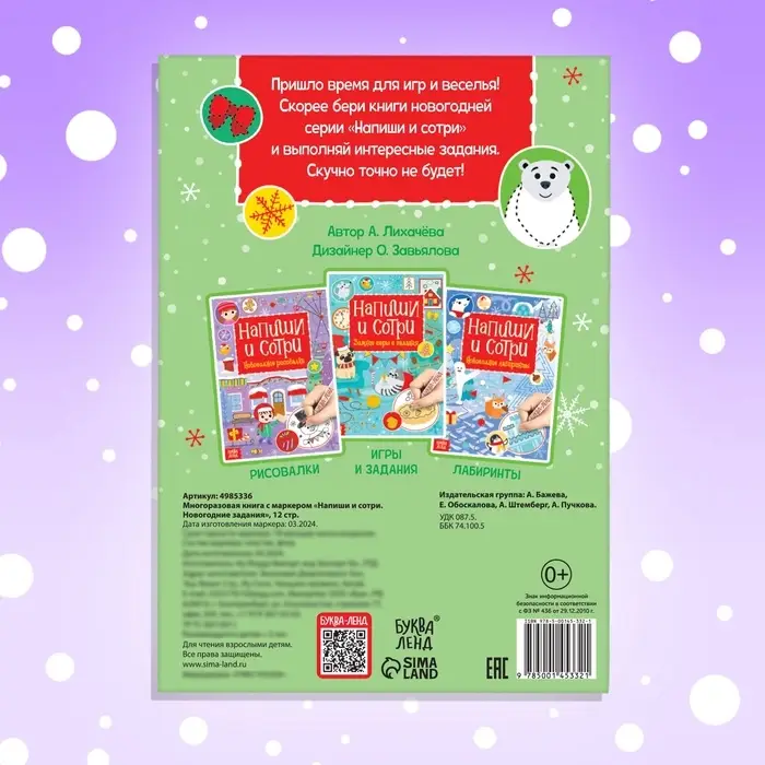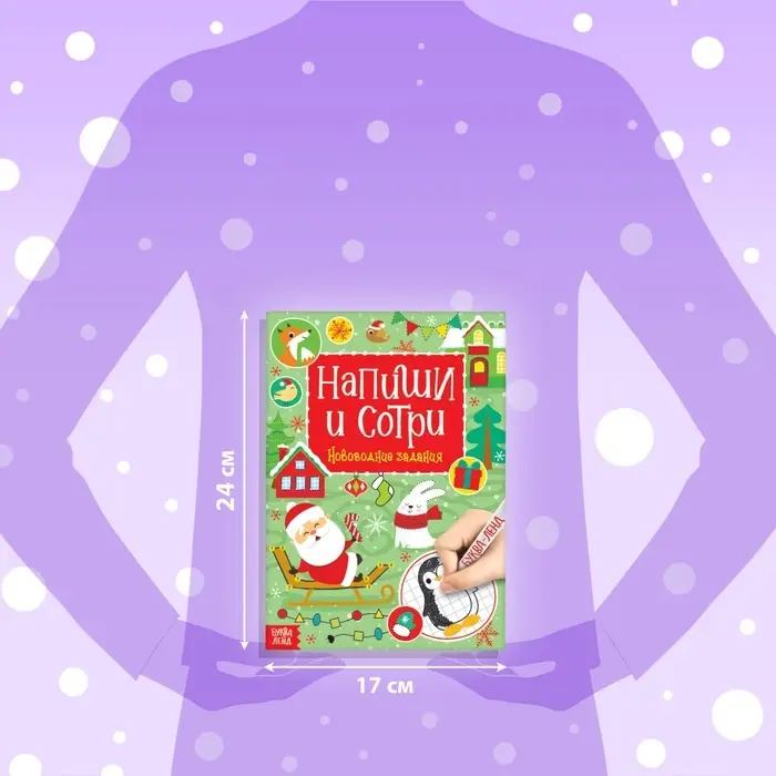 Книга с маркером «Напиши и сотри. Новогодние задания», 12 стр., многоразовая