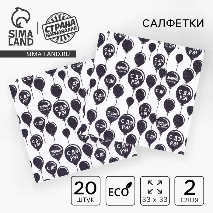 Салфетки бумажные «С днём рождения», двухслойные, 33×33 см, набор 20 шт.