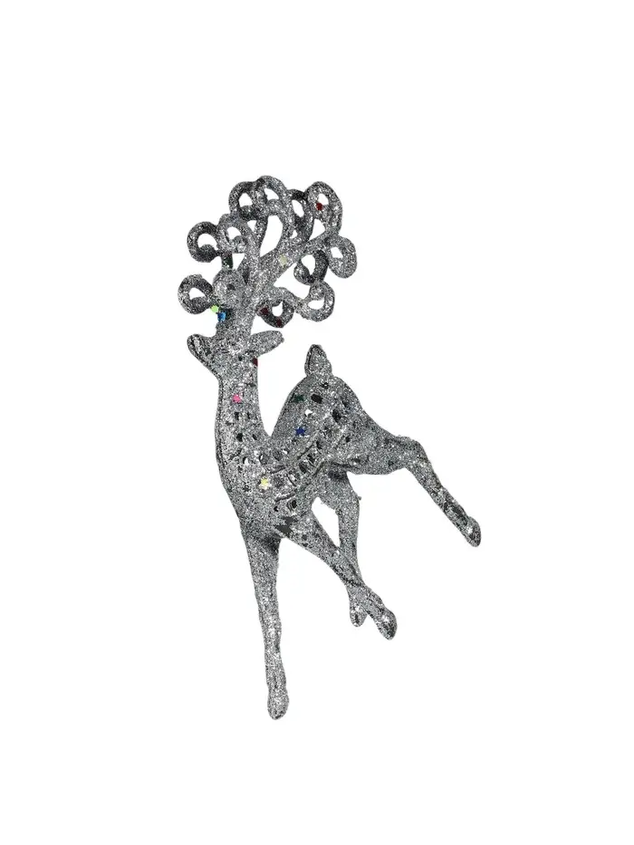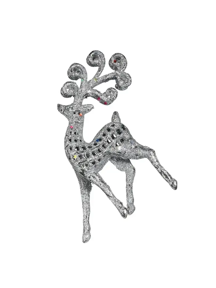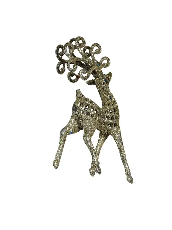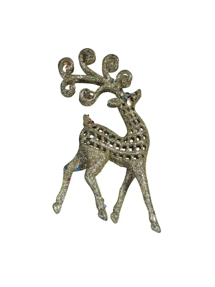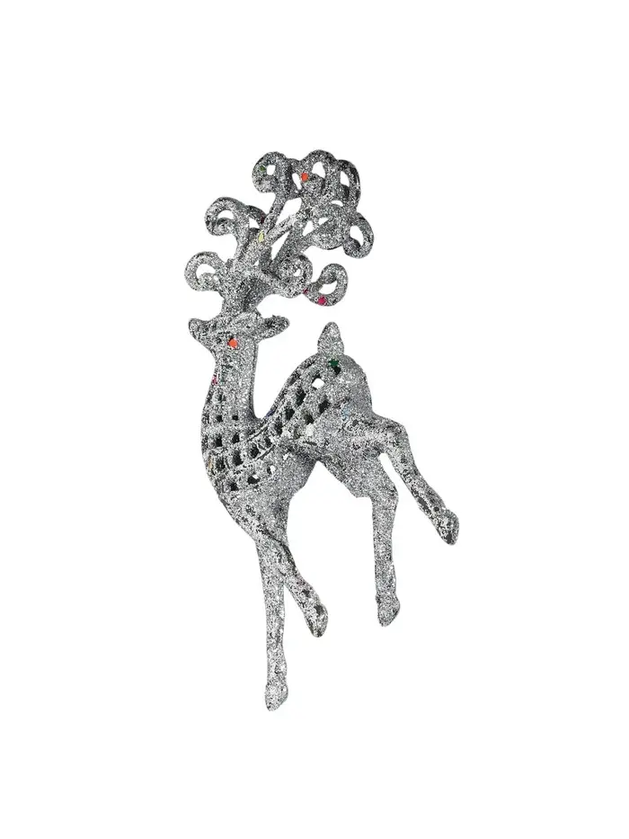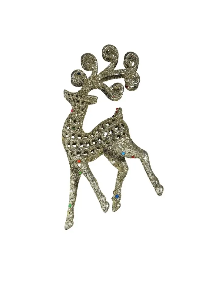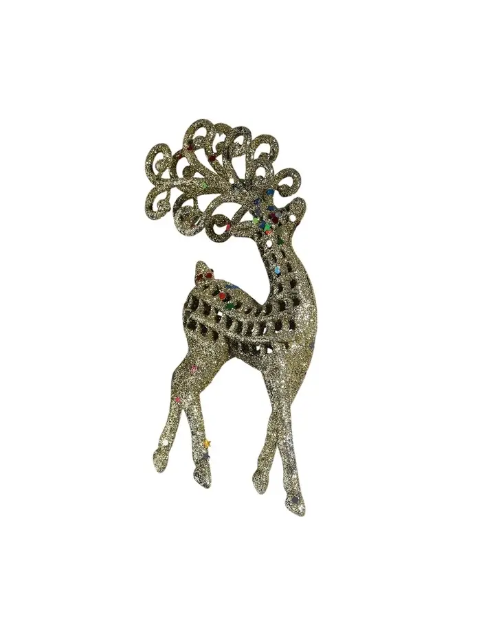 Изящные новогодние игрушки в виде ажурных оленей — это тонкий и элегантный акцент для ёлки, созданный с вниманием к деталям. Набор из двух фигурок в серебристо-золотых оттенках подчеркнёт торжественность праздника, не перегружая пространство. Их можно использовать как самостоятельные элементы декора или как часть более сложной композиции.