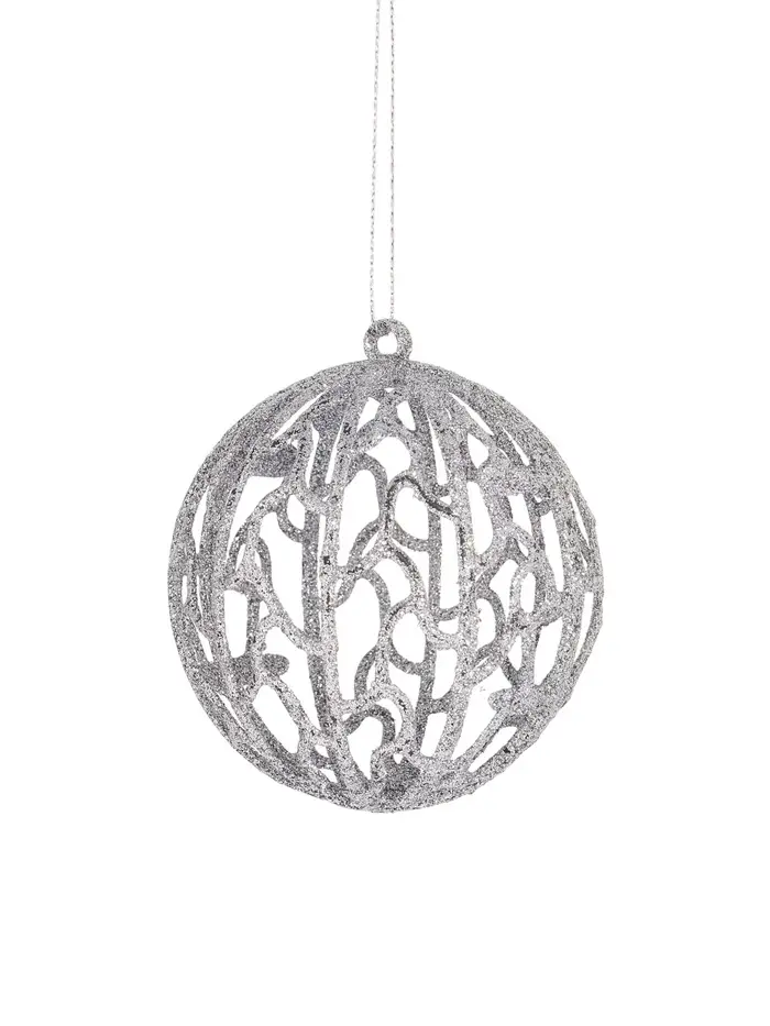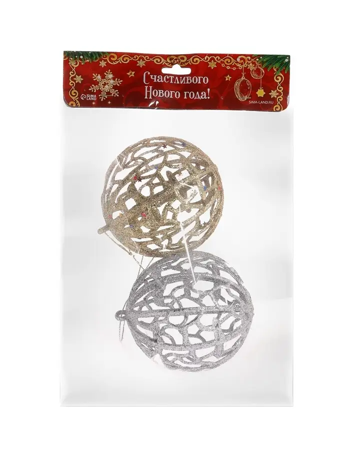 Набор из двух новогодних шаров с резным рисунком в серебристых и золотистых оттенках сочетает классический и скандинавский стили. Пластиковые украшения диаметром 8 см создают изысканный акцент в праздничном декоре, подчёркивая утончённость и гармонию оформления.
