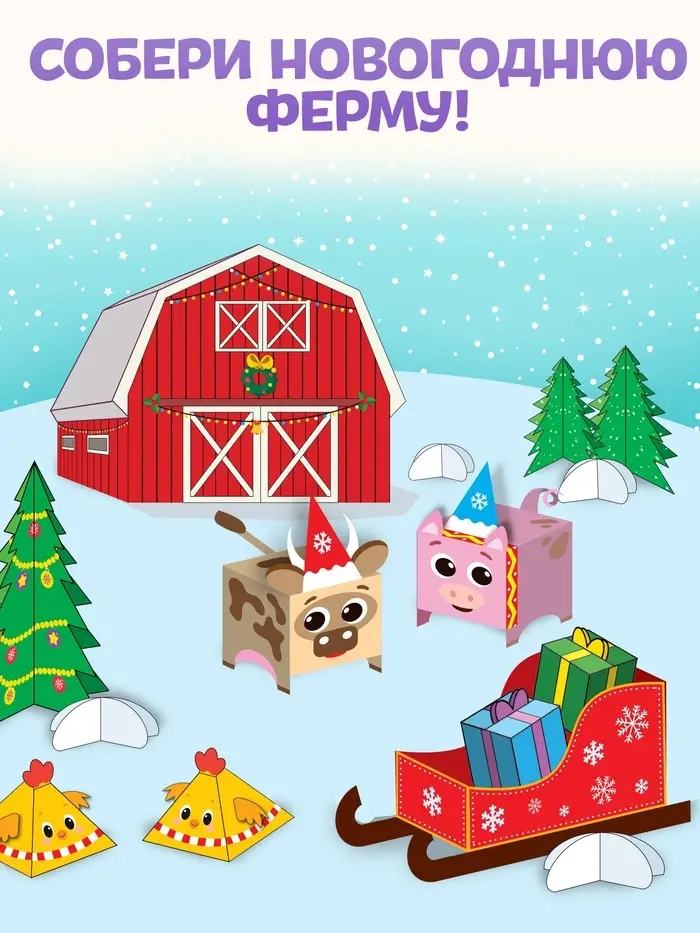 Книга - вырезалка «Новогодние поделки. Ферма», 20 стр.