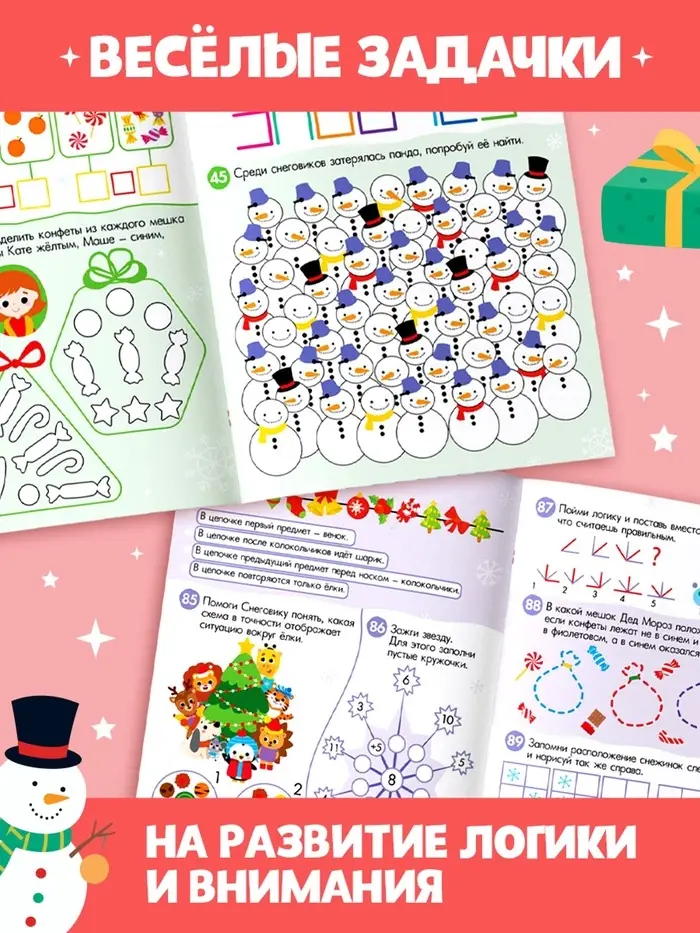Книга «100 новогодних задачек» — это не просто сборник упражнений, а волшебное путешествие в мир зимних праздников для детей от 3 лет.
