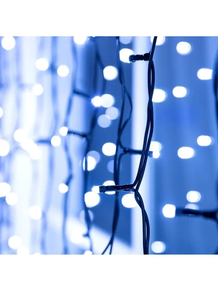 Гирлянда «Бахрома» 3×0.6 м, IP44, УМС, тёмная нить, 160 LED, свечение бело-синее, мигание, 220 В