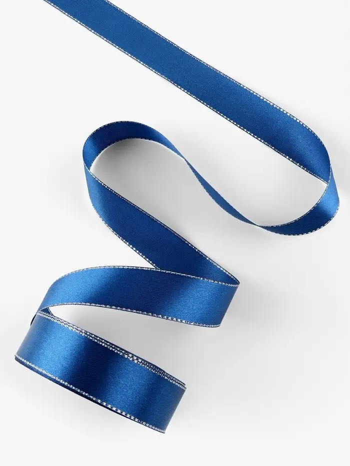 Эта Синяя лента с серебристым люрексом станет настоящим открытием для любителей изысканных деталей в рукоделии. Атласная полоска шириной 25 мм и длиной 23 метра добавит элегантность к любому проекту. Сам её цвет — это глубокий синий, обогащённый ухищренным блеском серебристых нитей люрекса. Подобная лента идеально подойдёт для оформления подарков, декора или создания аксессуаров, воплотив в жизнь даже самые смелые творческие идеи.