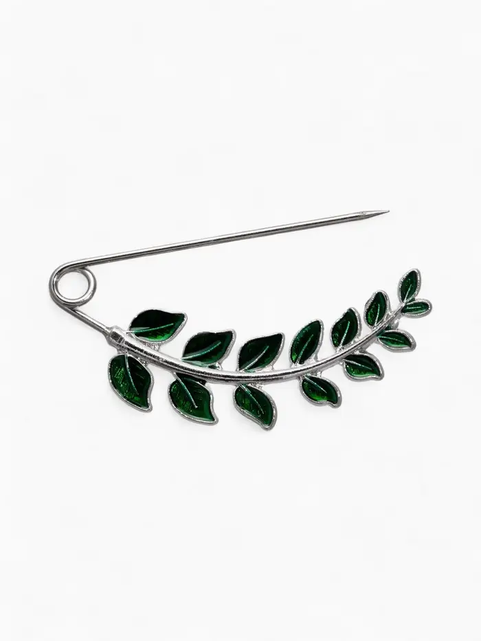 Булавка «Веточка лиственная», 6.5 см, зелёная в серебре