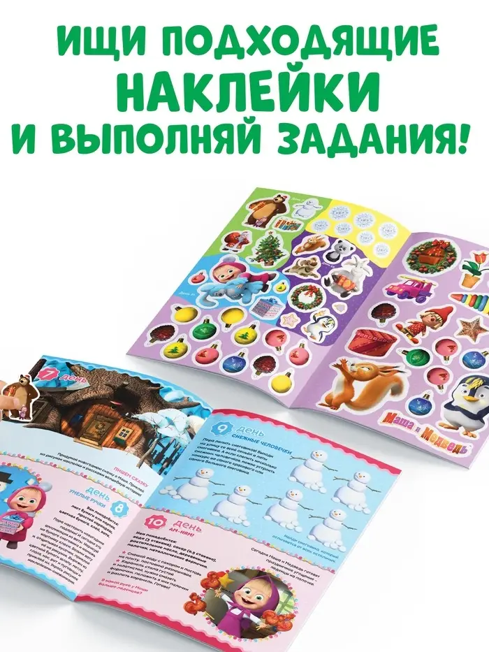 Адвент - календарь с наклейками, А4, 24 стр., Маша и Медведь