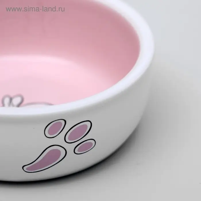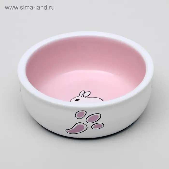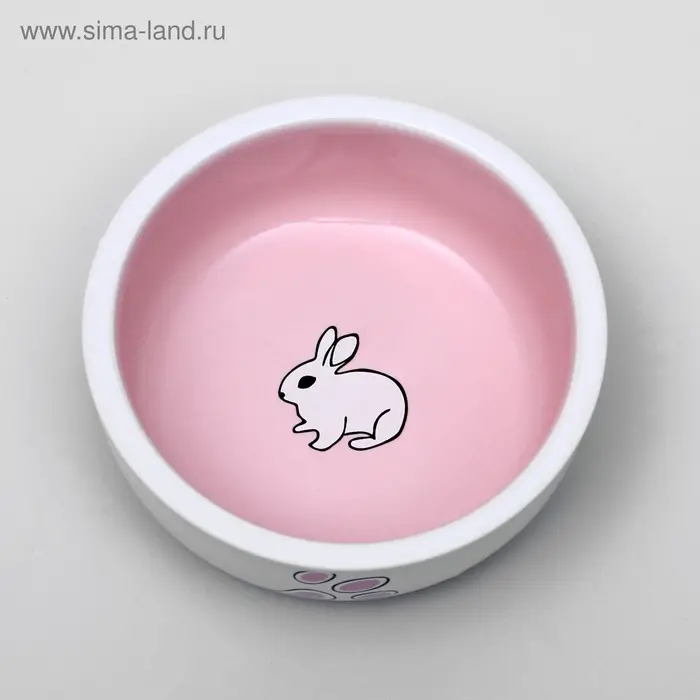 Миска для кроликов, 200 мл, 10×3.7 см, керамика, белая, розовая