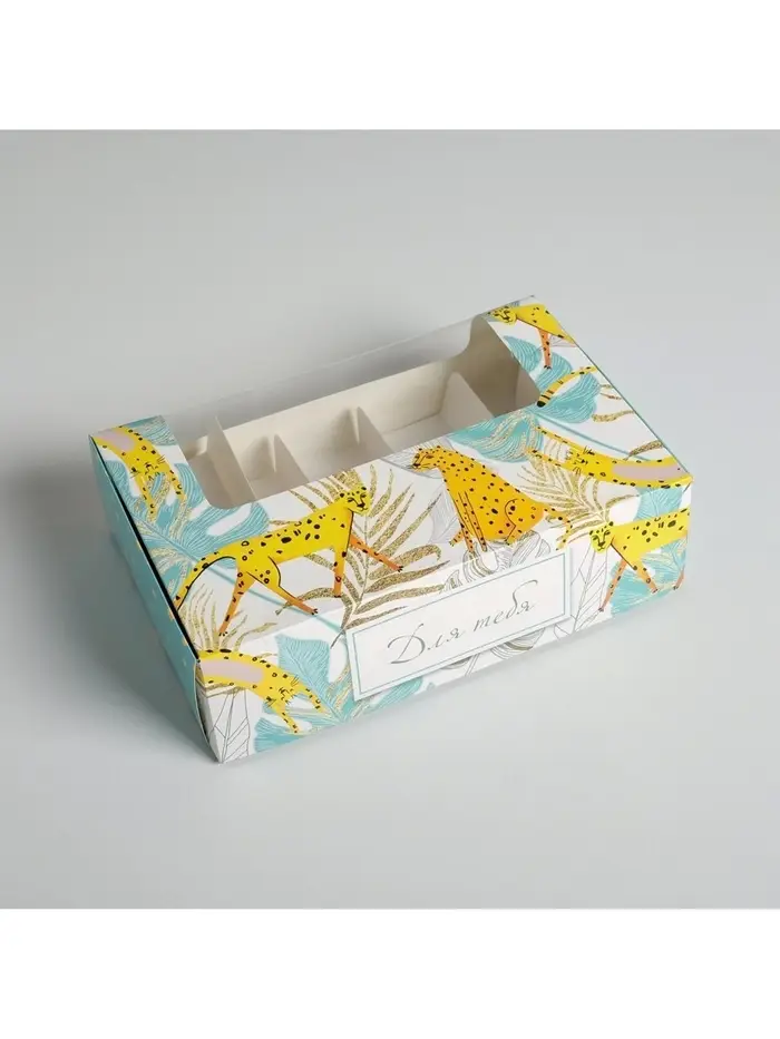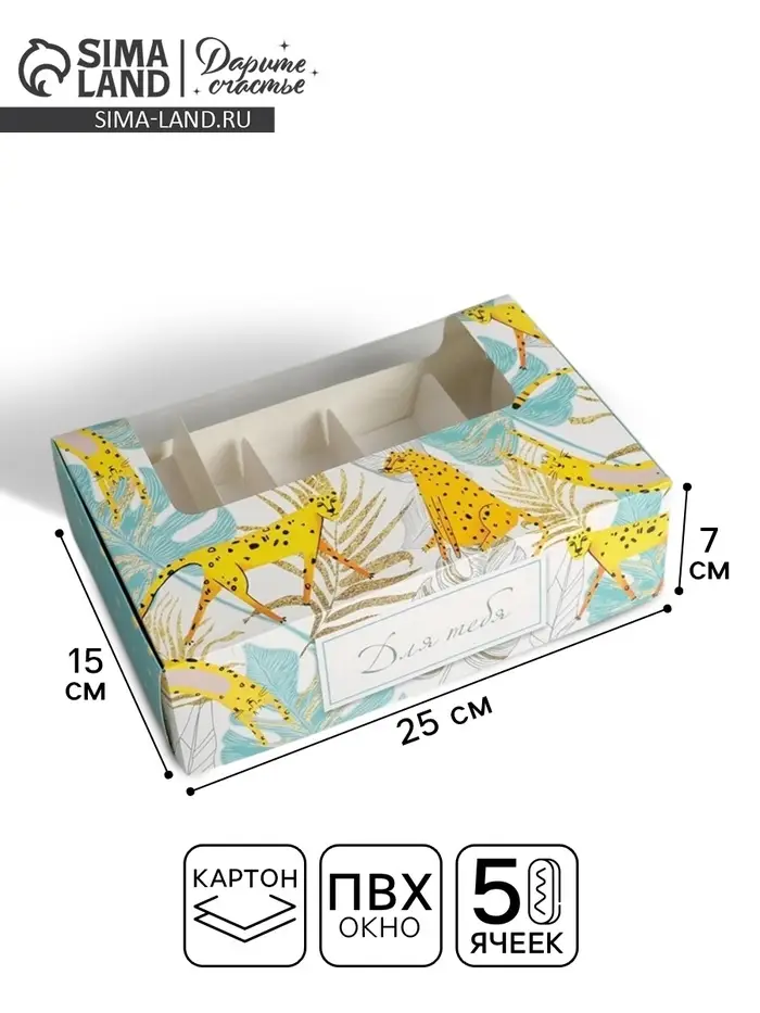Коробка для эклеров, кондитерская упаковка, 5 вкладышей, «Для тебя», 25.2×15×7 см