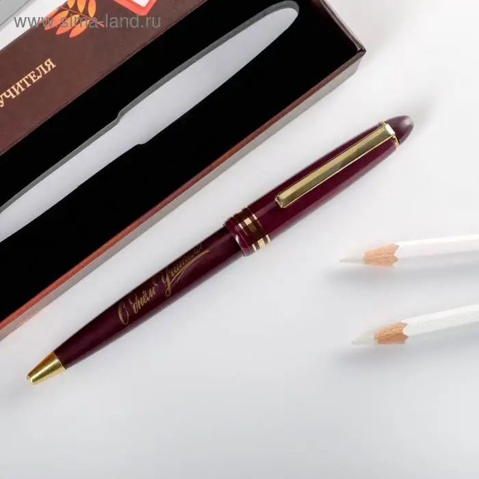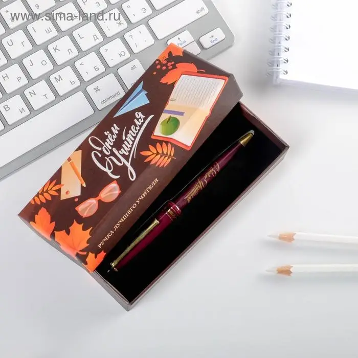 Ручка шариковая, синяя паста, 1 мм, пластик, автоматическая «С Днем учителя»