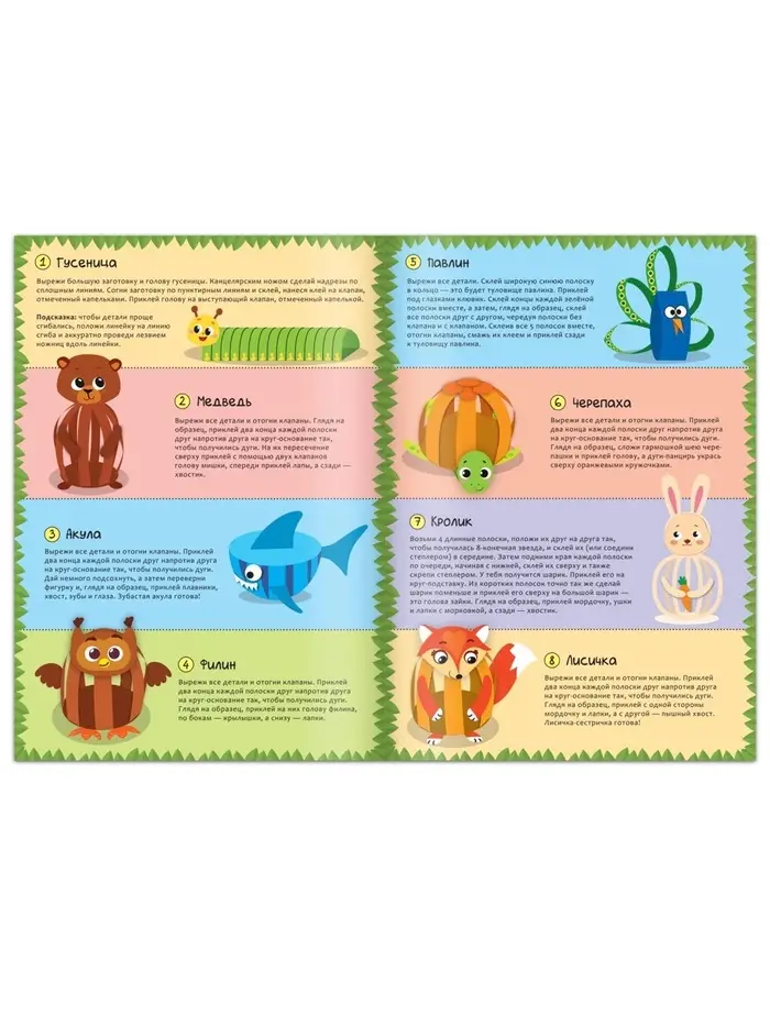 - Процесс создания прост: вырезайте полоски, склеивайте детали и получайте оригинальные фигурки.