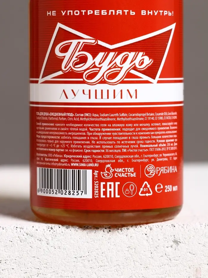 Гель для душа пиво «Будь», 250 мл, аромат бергамота и лимона, Чистое счастье