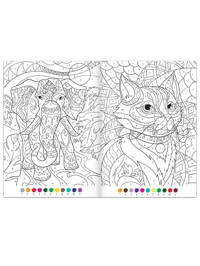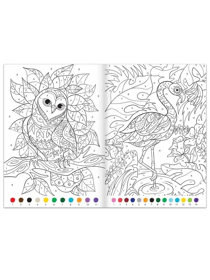 - Контуры изображений детально проработаны и пронумерованы, чтобы в результате получился реалистичный красочный рисунок.
