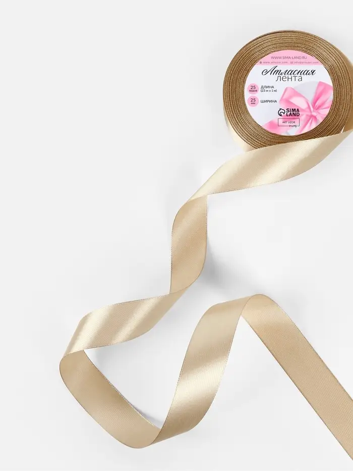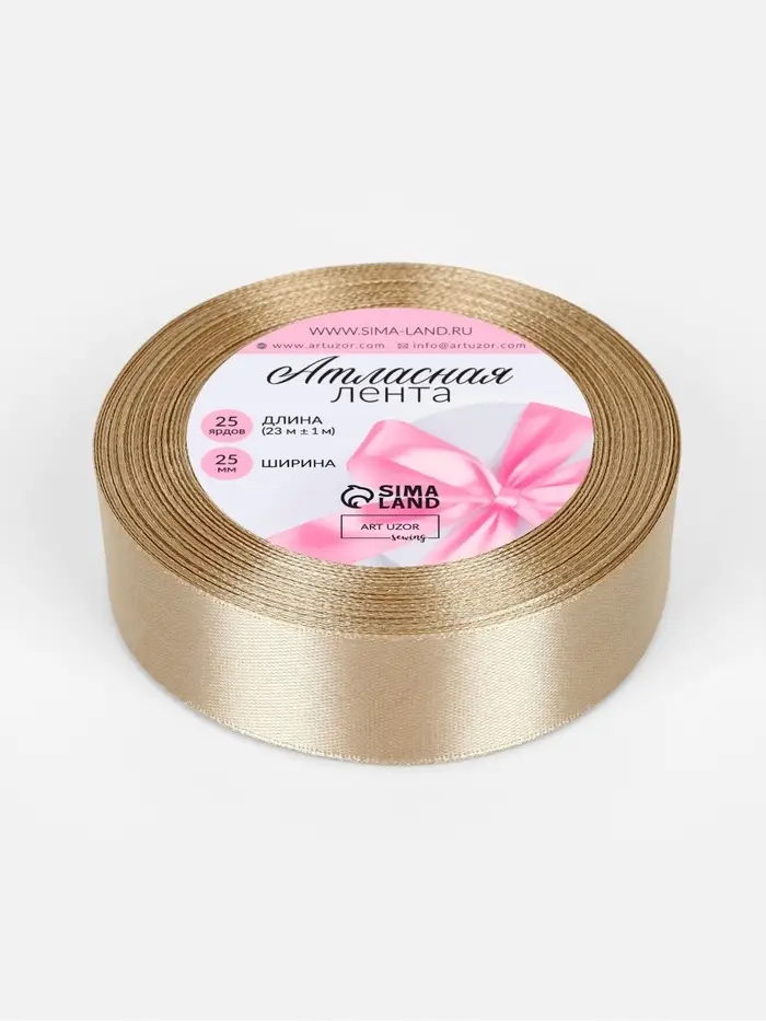 Лента атласная, 25 мм, 23±1 м, тёмно-бежевая №268