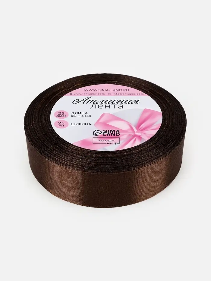Лента атласная, 25 мм, 23±1 м, коричневая