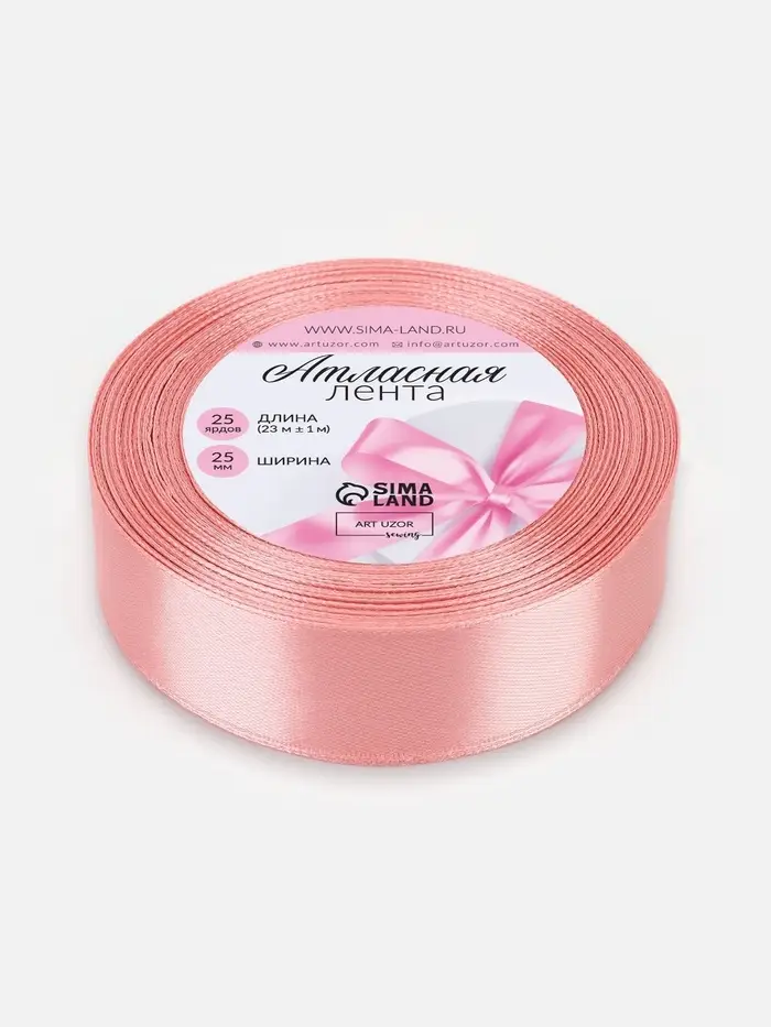 Лента атласная, 25 мм, 23±1 м, пастельно-розовая