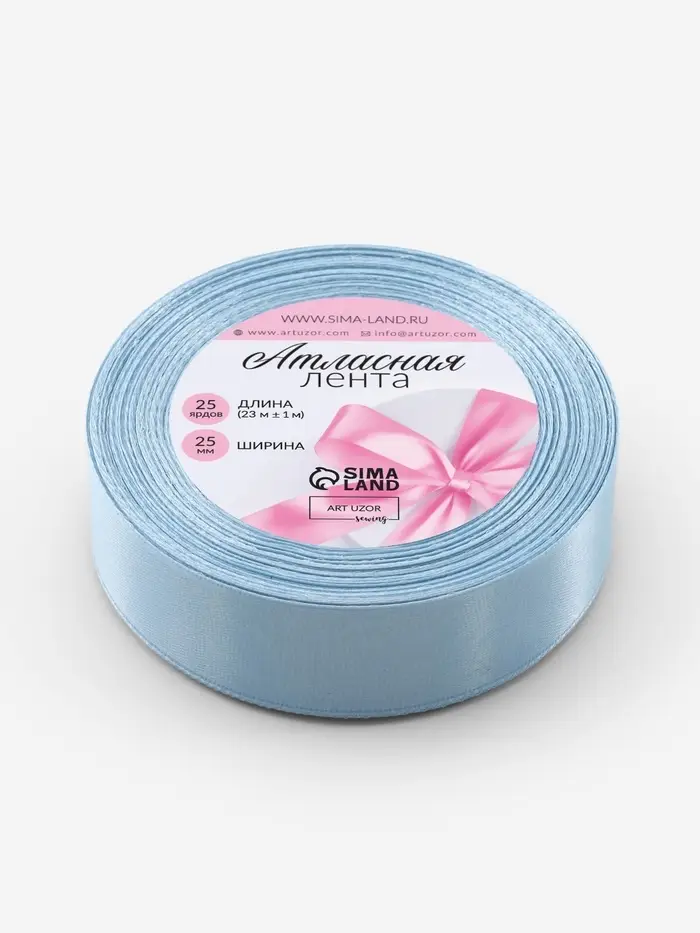 Лента атласная, 25 мм, 23±1 м, небесно-голубая №278