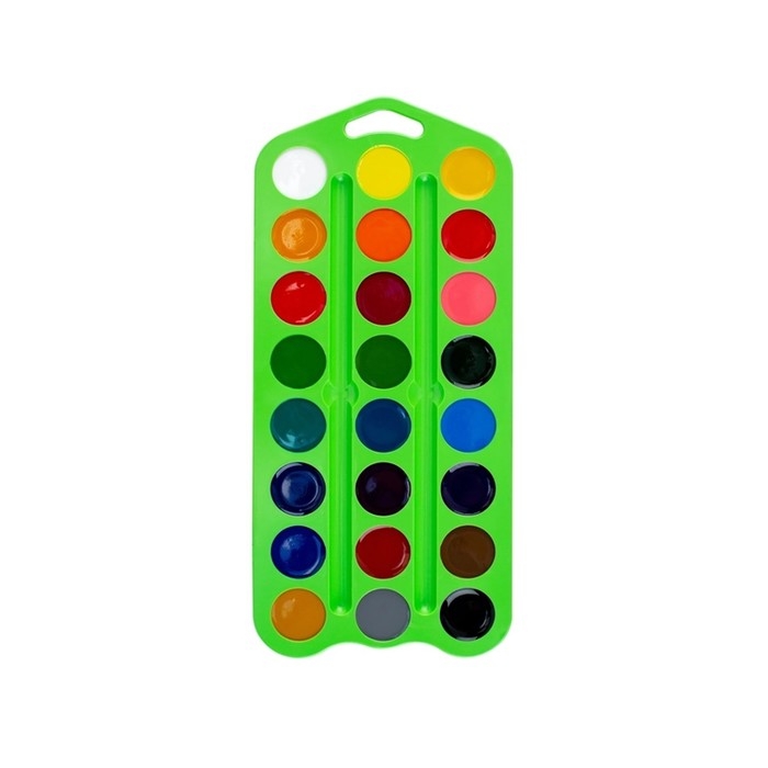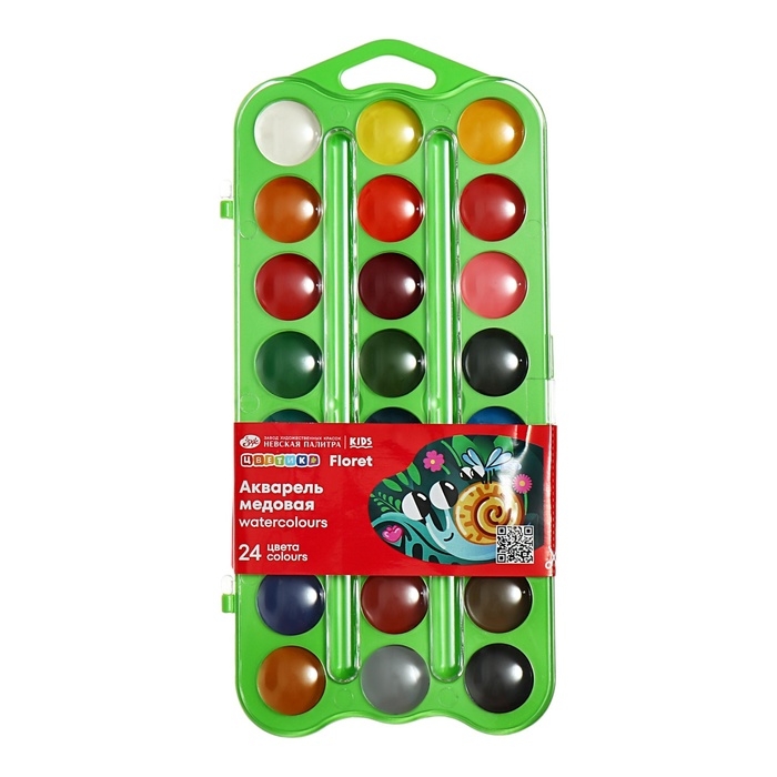 Акварель медовая 24 цвета, ЗХК "Цветик", без кисти, зеленый пластиковый футляр, 27421677