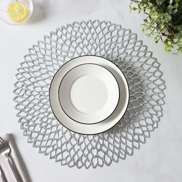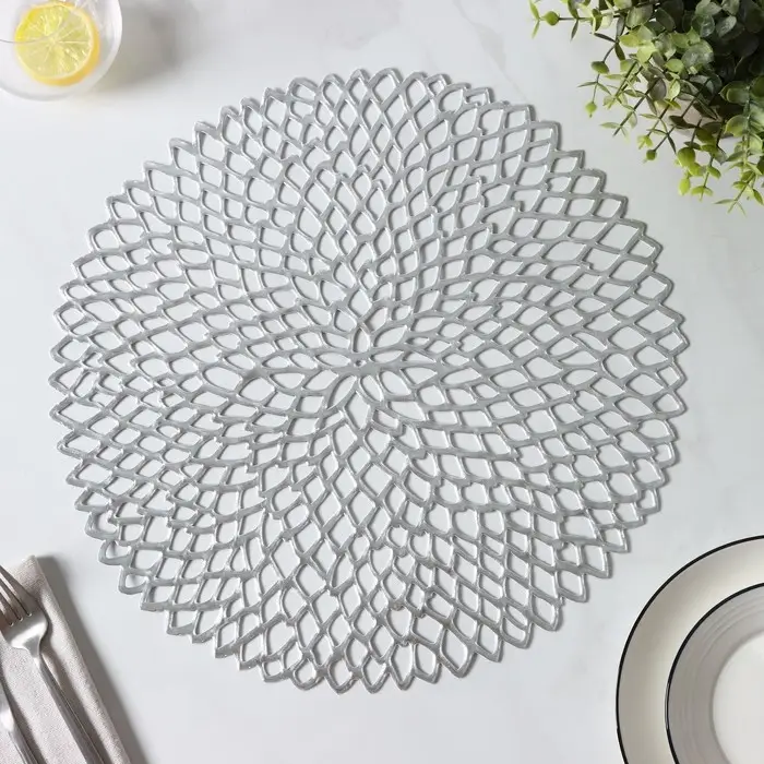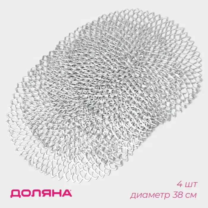Салфетки сервировочные на стол Доляна «Лея», d=38 см, 4 шт., серебряные