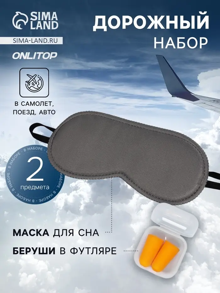 Набор туристический: маска для сна, беруши. Отличный вариант для поездки - все нужное будет с Вами.