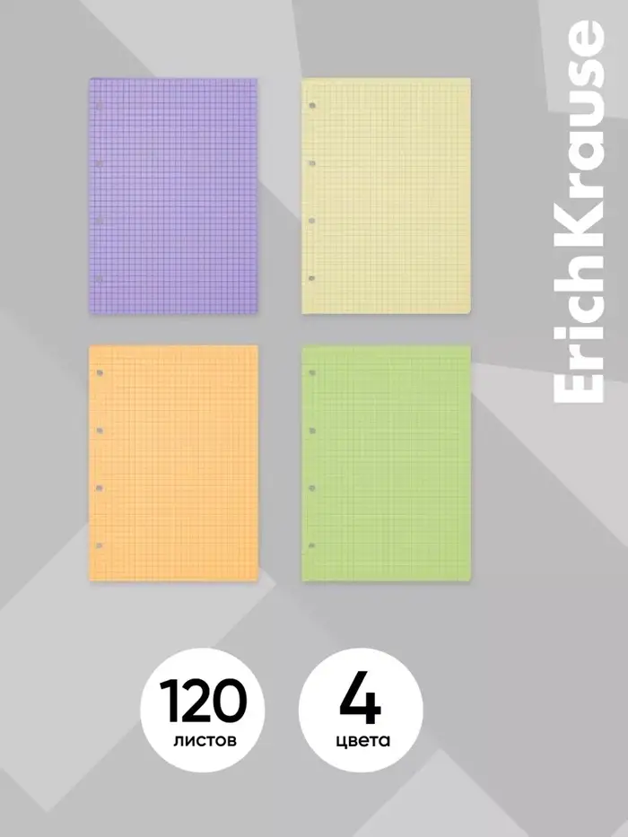 Сменный блок для тетради А5, на кольцах, 120 листов в клетку, ErichKrause, тонированный: 4 по 30 листов
