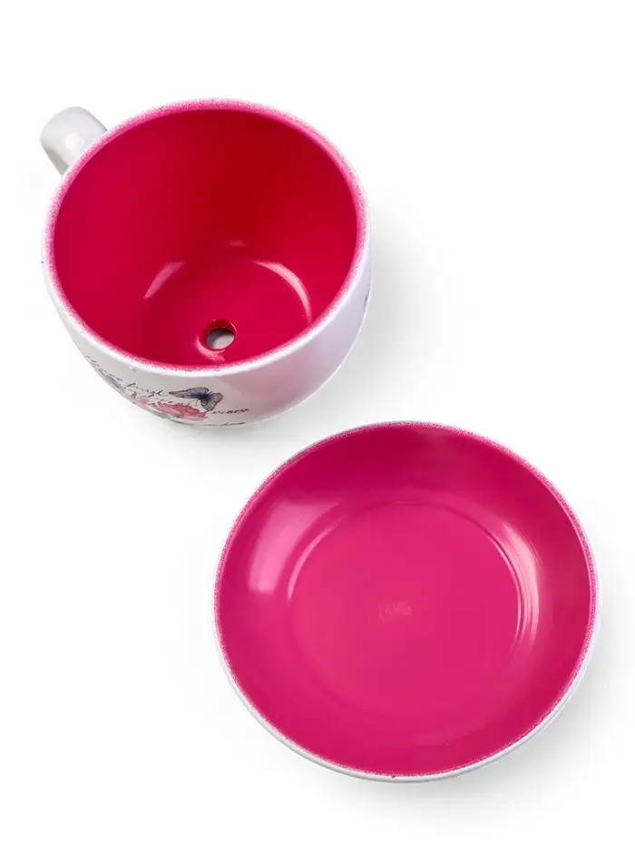 Горшок для цветов «Эмма», 1.3 л, 19×15×10 см, керамический, с поддоном, белый, розовый, Greengo