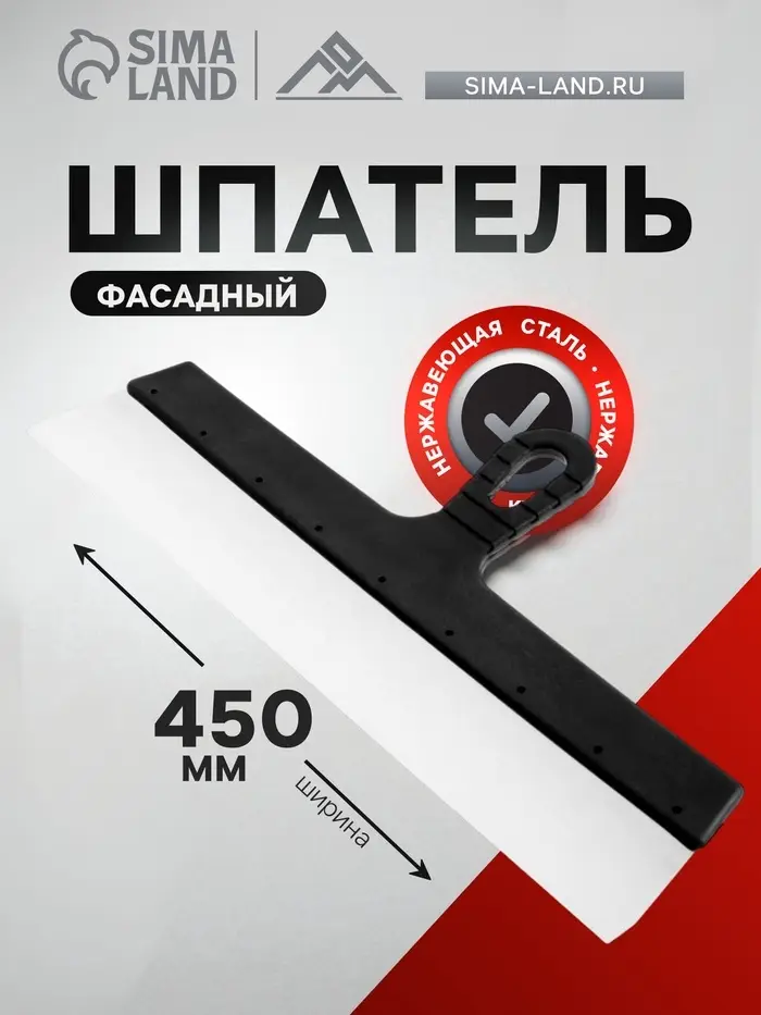 Идеальный баланс скорости и точности! Фасадный шпатель «ЛОМ» (450 мм) — профессиональный инструмент для эффективного выравнивания стен и нанесения шпаклёвочных смесей. Оптимальная ширина делает его универсальным помощником в отделочных работах.