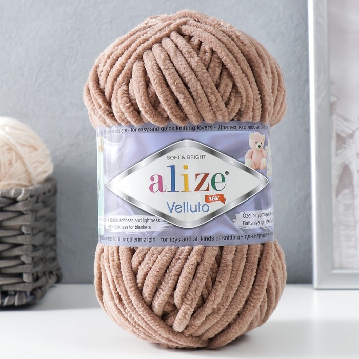 Пряжа "Velluto" 100% микрополиэстер 68м/100гр (329 табачно-коричневый)