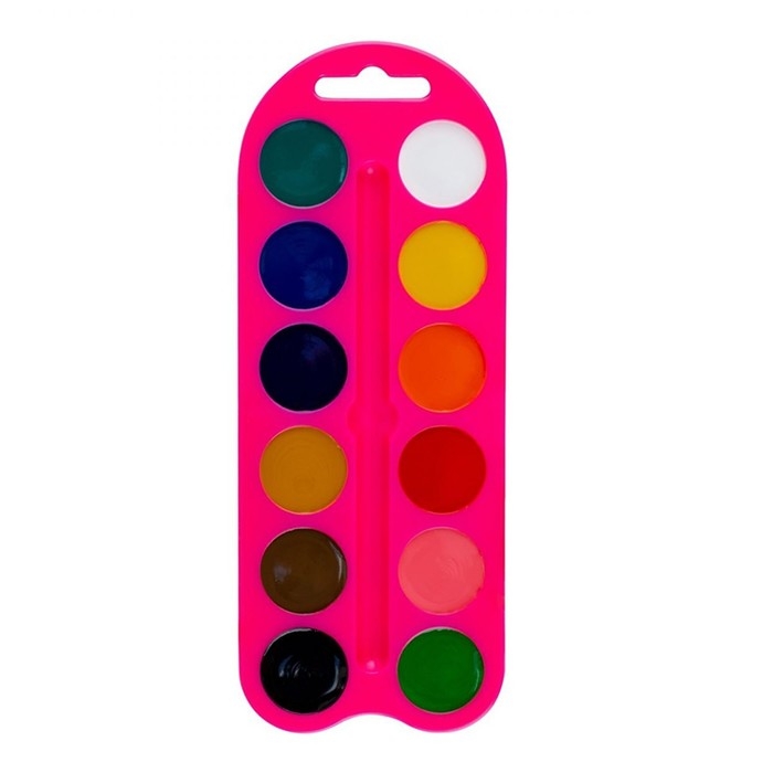 Краски акварельные, в кюветах, с кистью, 12 цветов