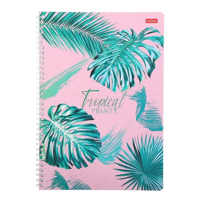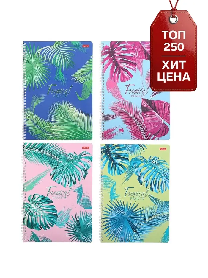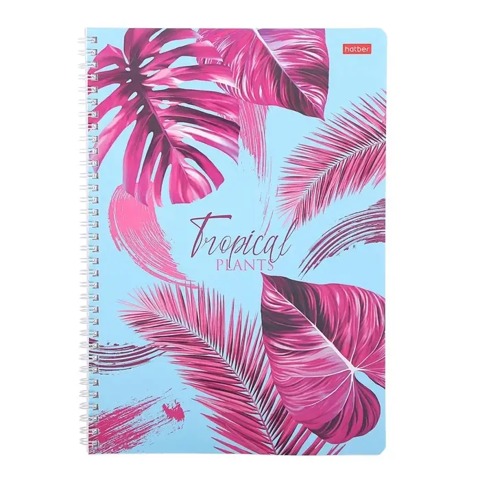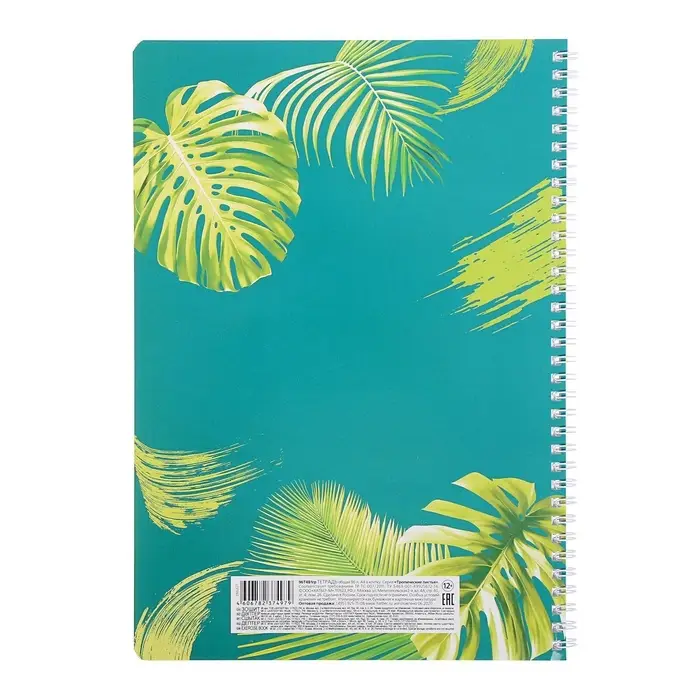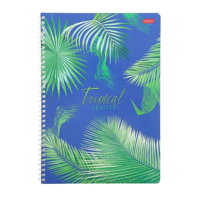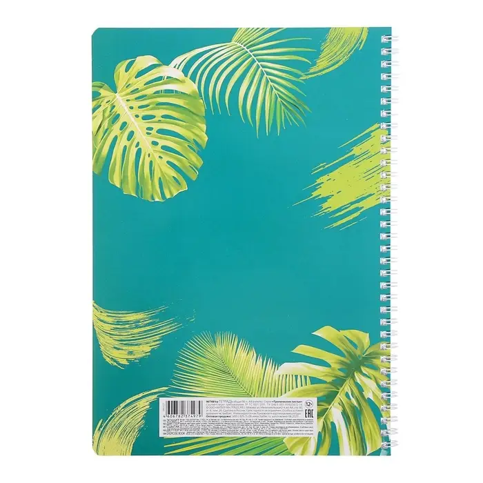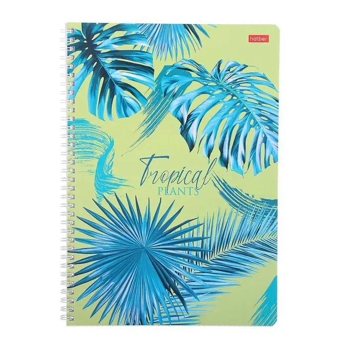Тетрадь А4, 96 листов в клетку на гребне «Тропические листья», обложка мелованный картон, блок офсет, МИКС