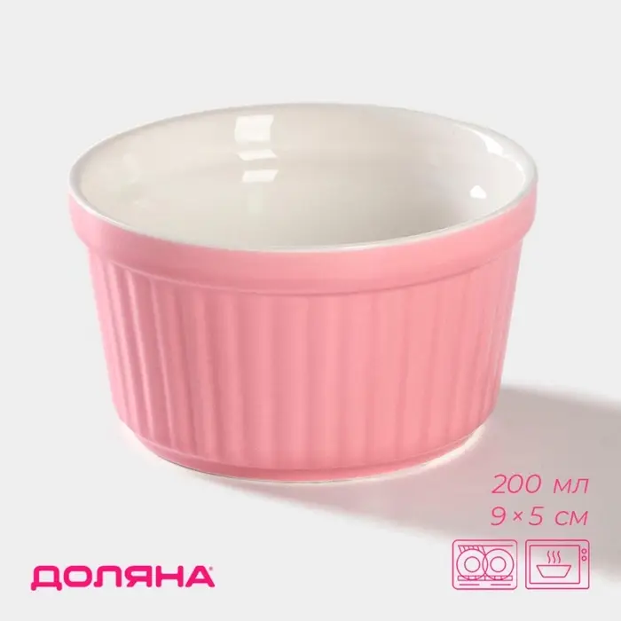 Рамекин из жаропрочной керамики Доляна «Нюд», 200 мл, 9×5 см, розовый