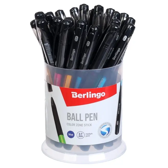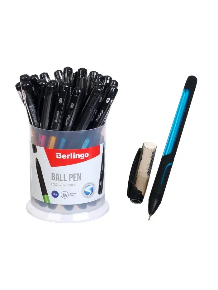 Ручка шариковая Berlingo. Color Zone stick, синий стержень, узел 0.7 мм, прорезиненный корпус, МИКС