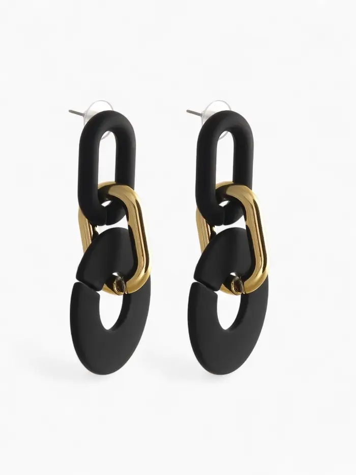 Стильные серьги с трёхзвенной цепочкой в сочетании золотистого и чёрного цветов создают выразительный акцент в образе. Их длина 6,6 см подчёркивает элегантность и современный дизайн, подходящий для женщин, ценящих оригинальные аксессуары.