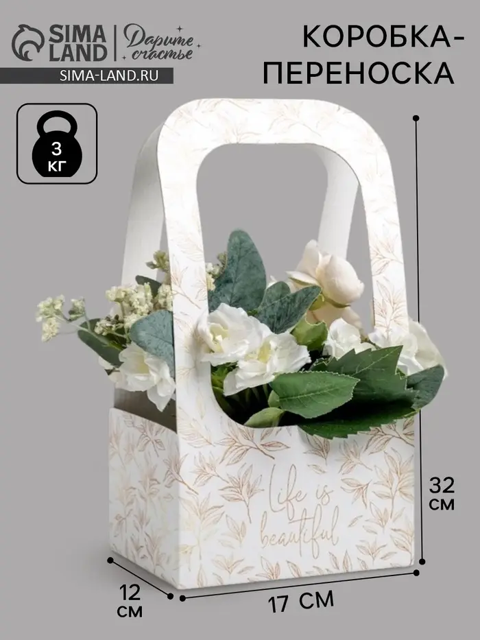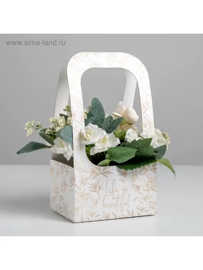 Коробка-переноска для цветов «Веточки», 17×12×32 см