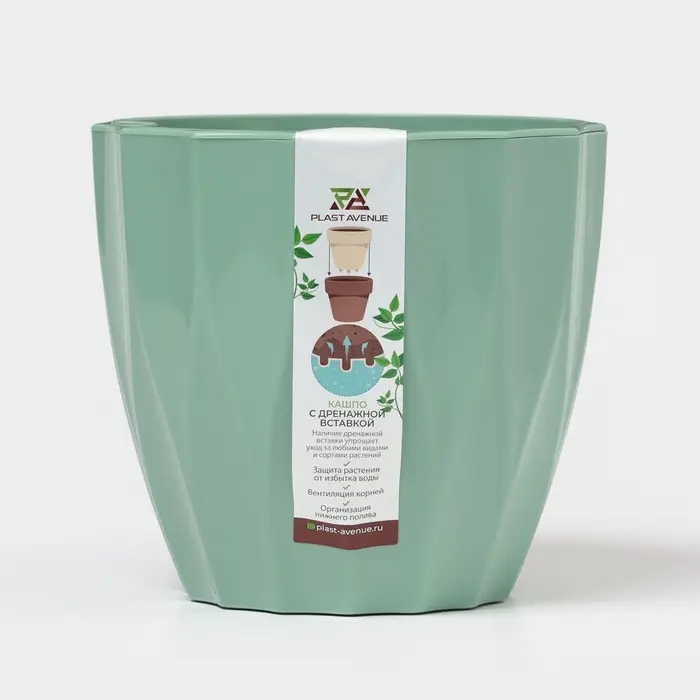Кашпо для цветов со вставкой «Флюте», 1.9 л, цвет нефрит