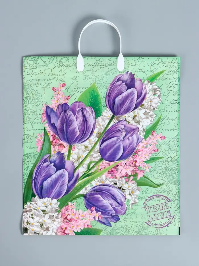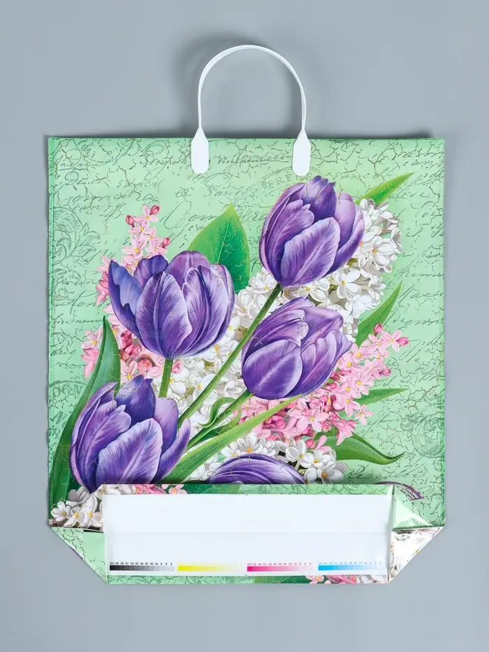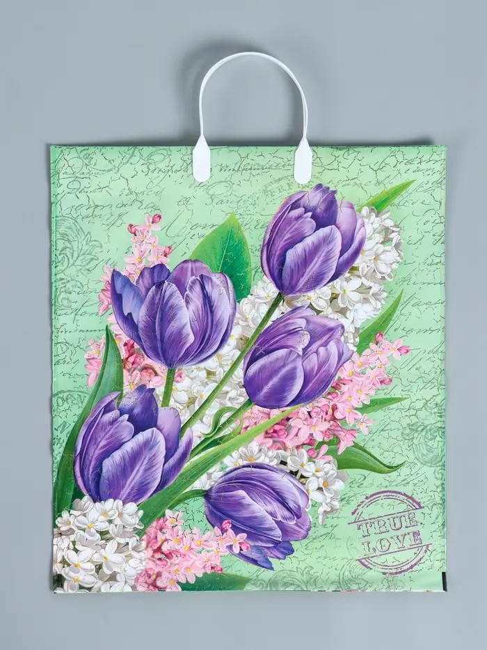 Утонченность в деталях: Пакет изготовлен из плотного полиэтилена, что обеспечивает сохранность содержимого. Флоральные мотивы и качественная отделка создают ощущение праздника, а классическая форма делает его универсальным для различных типов подарков. Такой пакет становится гармоничным дополнением к презентам для женщин и ценителей природной эстетики.