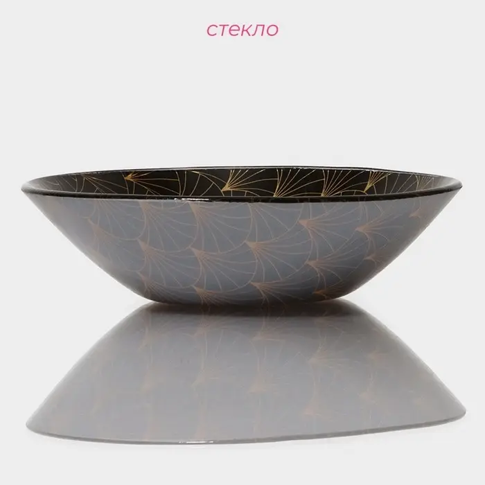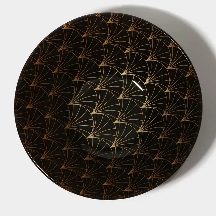 Салатник Доляна «Золотое перо», 600 мл, 18.5×5 см, стекло, чёрный