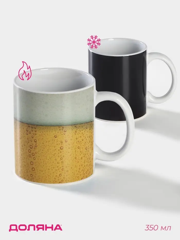 Кружка-хамелеон Доляна «Прохладительные пузырики» — не просто приспособление для питья. Это настоящее украшение дома и яркий аксессуар! Налейте горячего чаю, кофе или какао, и кружка сразу поменяет цвет. Вашу оригинальность по достоинству оценят гости, а сам сосуд освежит любой интерьер благодаря смелому дизайну.